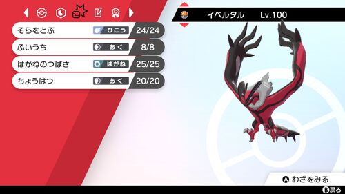 「なんだこの技構成?!」 物理珠イベルの技構成はほぼ2パターン。 1. 悪技/飛行技/鋼技/自由 2. 悪技①/悪技②(ふいうち)/飛行技/鋼技 鋼技入れないのは論外寄り。バンギラスを壊したい! ~技選択~ 悪技 うっぷんばらし:一番安定した打点。威力75と低く、…